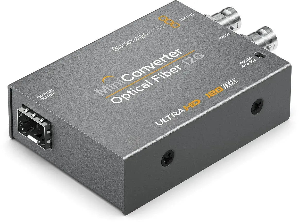 Blackmagic Mini Converter Optical Fiber 12G converts SDI to optical fiber and optical fiber to SDI in both directions at the same time, you can even have different video standards going in each direction! The 12G-SDI connections are multi rate, which makes it compatible with all SD, HD and Ultra HD formats and equipment up to 2160p60, including Level A and B devices. You can install any standard 3G, 6G or 12G-SDI SFP optical fiber module so you can send SDI using the same low cost optical fiber cables that are commonly used for computer networks.